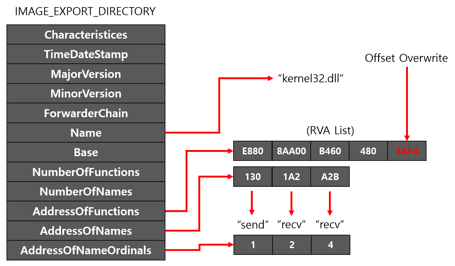 이번 포스팅에서는 EAT에서 함수의 주소를 구하는 원리와 EAT 후킹 방법에 대해 설명하려고 한다. EAT는 IAT와 다르게 오프셋이 저장되기 때문에 x86이라면 모를까 x64 환경에서는 100% 성공한다고 장담할 수는 없다. 하지만 해당 블로그는 따로 명시되어 있지 않다면 Windows x64를 기준으로 작성하기 때문에 x64 환경에서 EAT 후킹 방법에 대해서 설명하려고 한다.