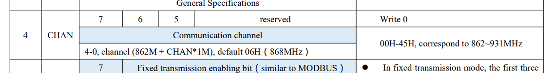 이전에 첨부했었던 데이터 시트를 확인해보면 기본 862MHz + CHAN * 1MHz 공식으로 주파수를 설정한다. 채널을 60으로 설정하게되면 862MHz + 60 * 1MHz으로 922MHz 주파수를 사용할 수 있게된다.