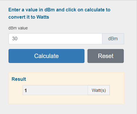실제로 사이트에서 변환하면 충격적인 결과를 알 수 있는데 바로 30dBm이 1W 였던 것이다...