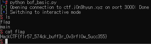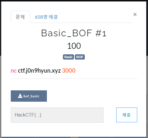HackCTF의 첫번째 포너블 문제다. 이름이 Basic_BOF 인 것으로 보아 간단한 Buffer OverFlow 문제로 예상된다.