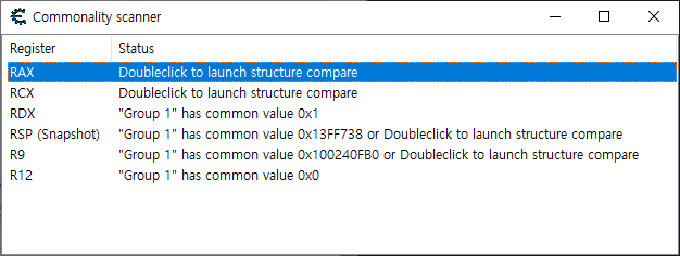 Only find matching groups를 체크해주고 Scan을 시작해준다. 그러면 각각 구조를 비교하여 다른점을 찾아주는데 Offset 0에 60은 체력이 존재한다는 것을 우리는 이미 코드를 통해서 알고 있다. 그 외에 적팀과 플레이어의 다른점은 Offset 0에 70번째를 가지고 구별할 수 있을 것 같다. 적팀은 1로 설정되어 있고 플레이어는 0으로 되어 있으니 이를 이용해 데미지를 조작할 수 있을 것으로 보인다. 그렇다면 Auto Assemble 기능을 사용하자