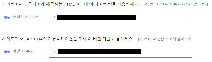 사이트 키 : 웹 사이트에서 토큰을 발급받기 위해 사용하는 키