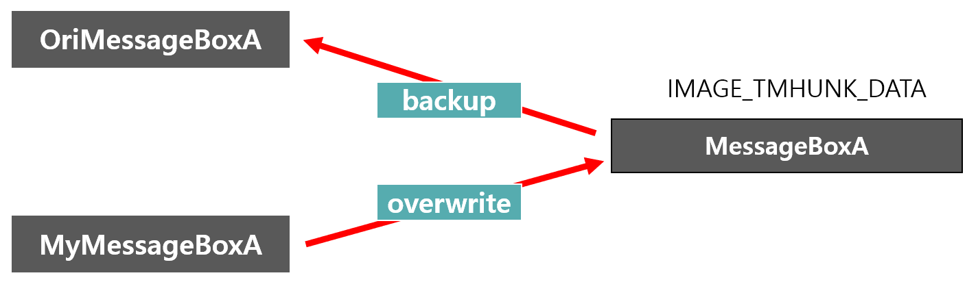 MyMessageBoxA는 후킹 함수가 된다. MessageBoxA가 호출되면 해당 함수가 호출되지 않고 후킹 함수가 호출되게 된다.