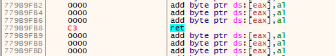 Opcode 0xC3를 사용한 리턴 어셈블리 명령이다.