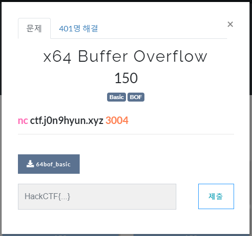 [HackCTF] Pwnable : x64 Buffer Overflow (64bof_basic) 본문