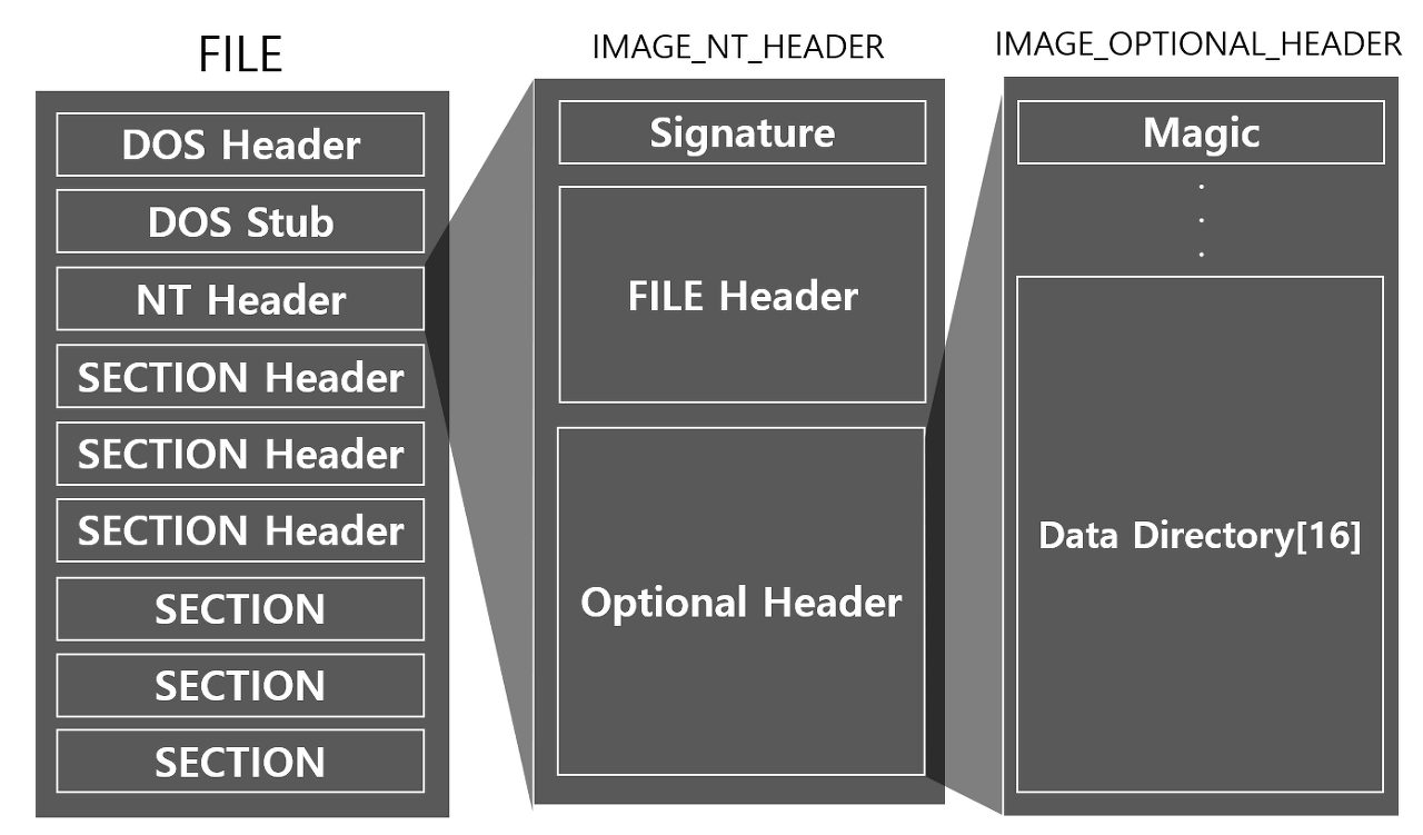 IMAGE_EXPORT_DIRECTORY는 NT Header(IMAGE_NT_HEADER)를 통해 구할 수 있다.